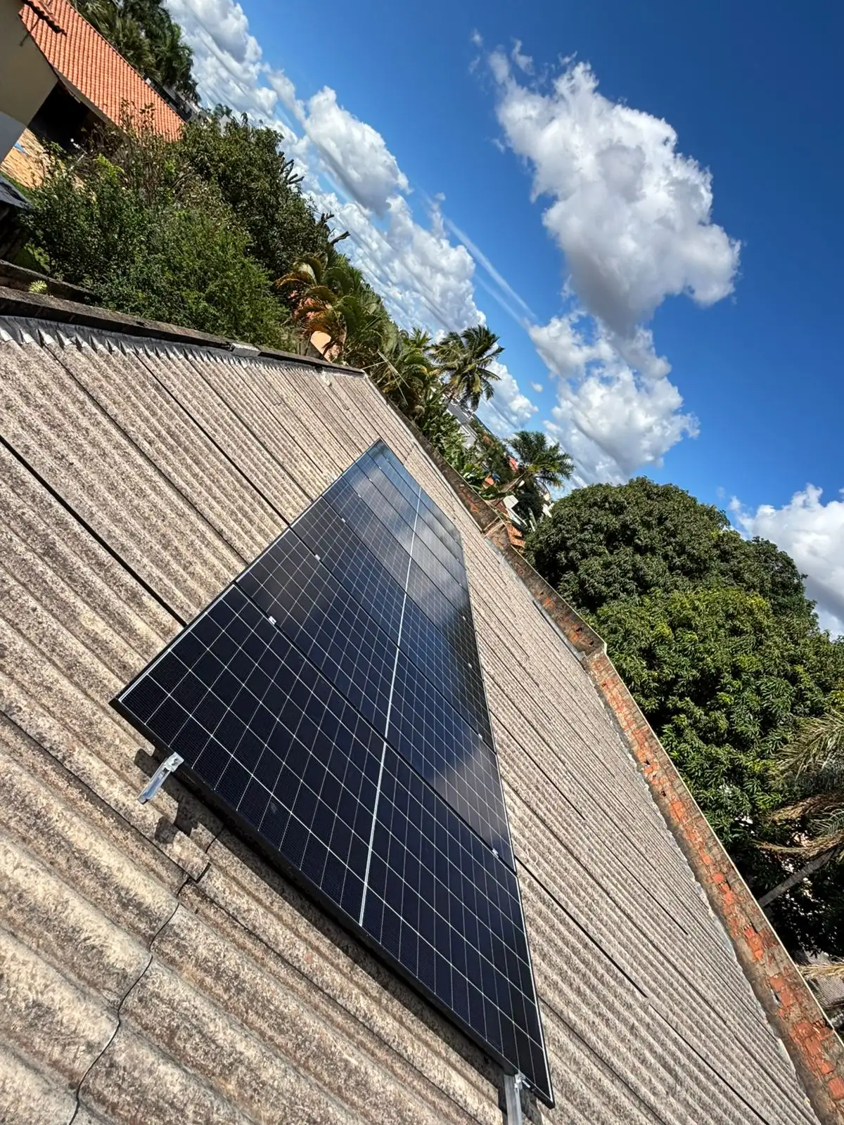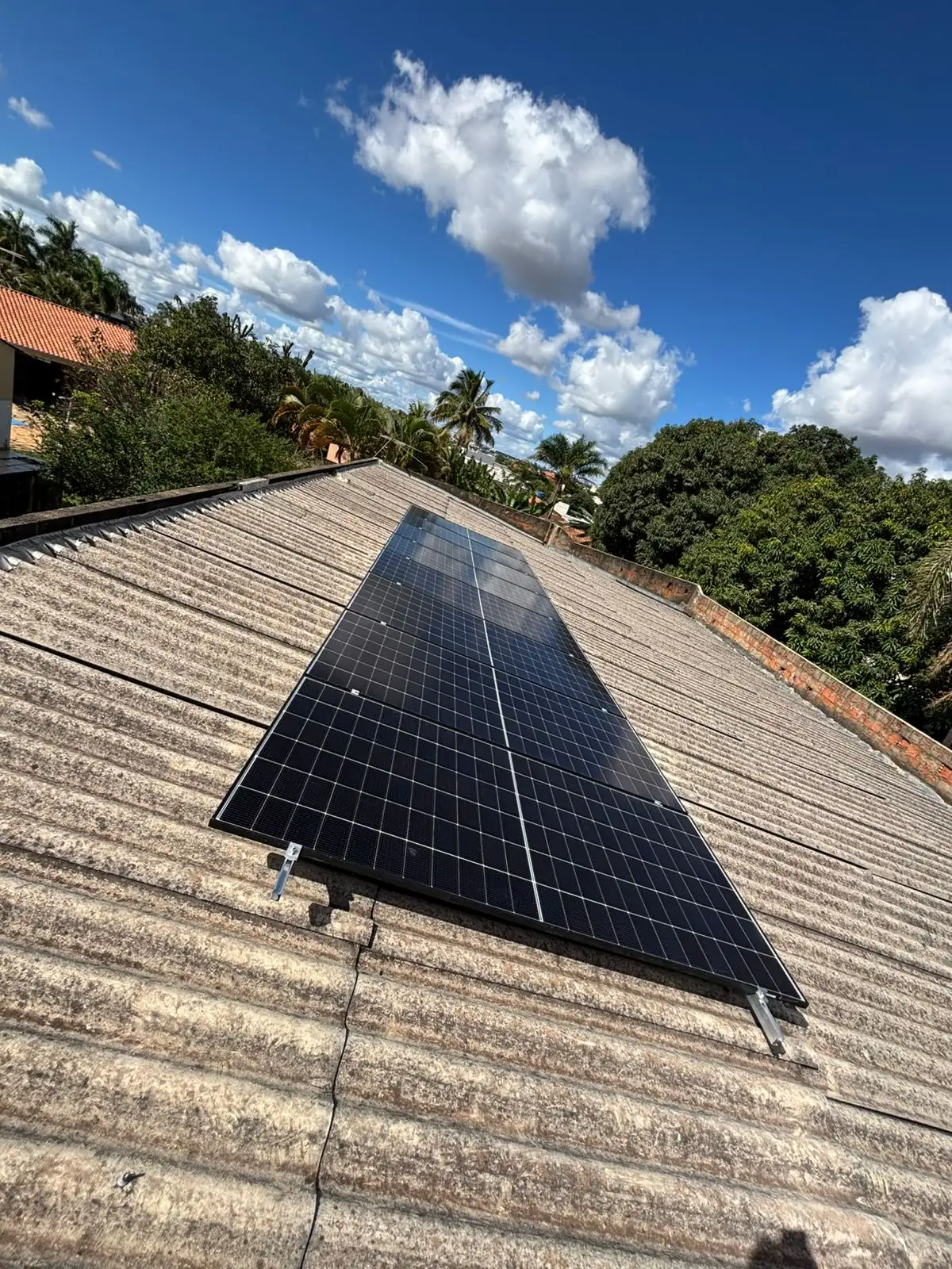 Instalação de 8 módulos fotovoltaicos ,dimensionados para uma geração média estimada de 600 kWh por mês, ideal para atender comércios, empresas ou unidades com alto consumo de energia elétrico.