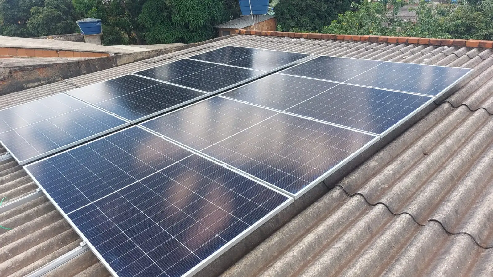 Instalação de 8 módulos fotovoltaicos 600 w ,dimensionados para uma geração média estimada de kWh por mês, ideal para atender comércios, empresas ou unidades com alto consumo de energia elétrico.