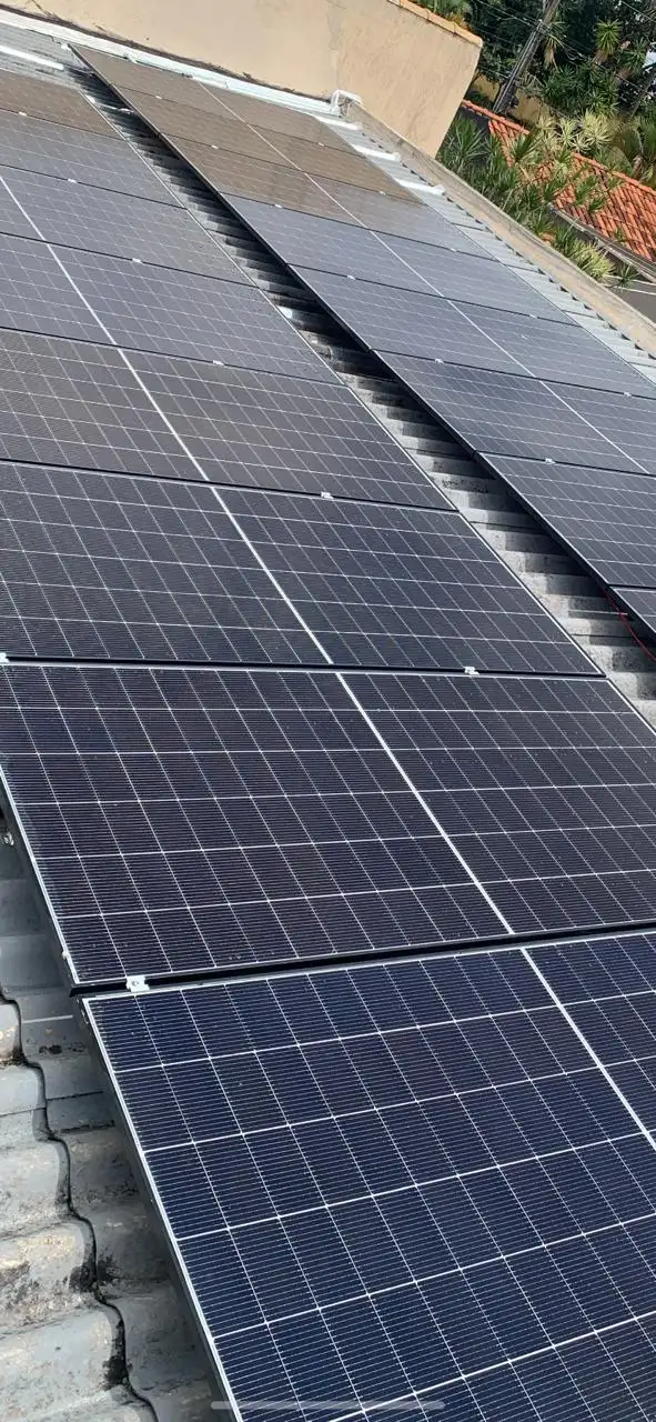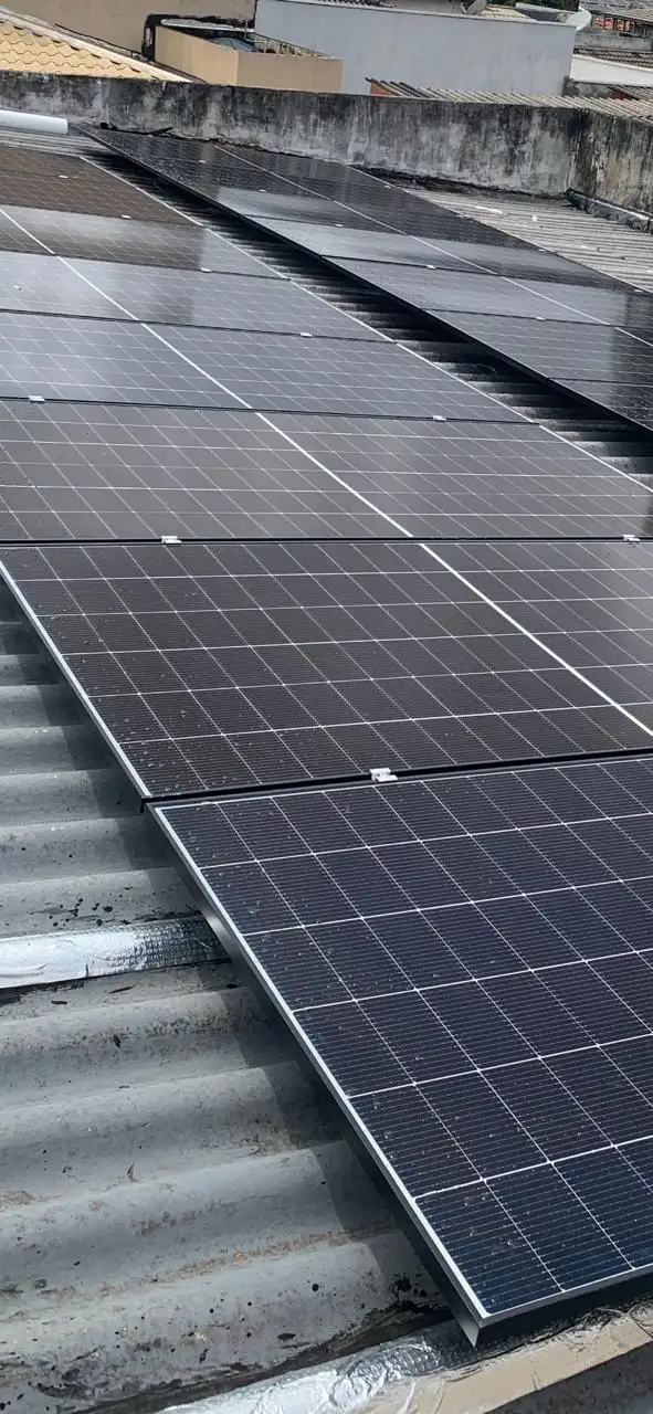 Instalação de 14 módulos fotovoltaicos 700 W ,dimensionados para uma geração média estimada de 1200 kWh por mês, ideal para atender comércios, empresas ou unidades com alto consumo de energia elétrico.