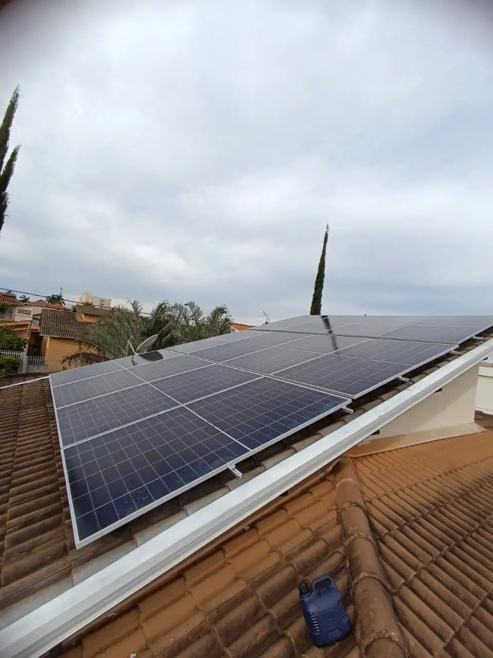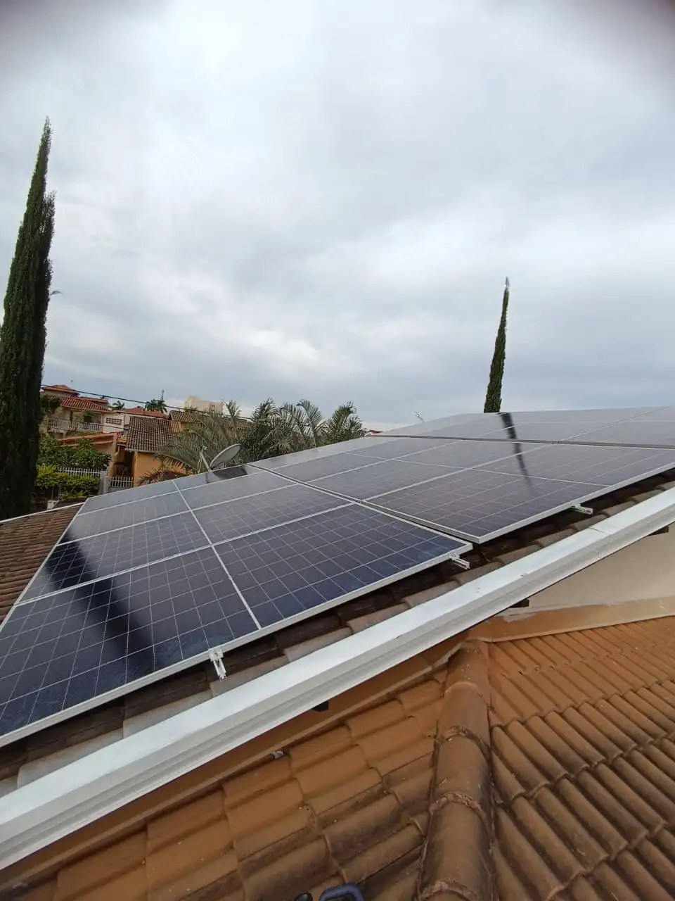 Instalação de 13 módulos fotovoltaicos ,dimensionados para uma geração média estimada de 1000 kWh por mês, ideal para atender comércios, empresas ou unidades com alto consumo de energia elétrico.