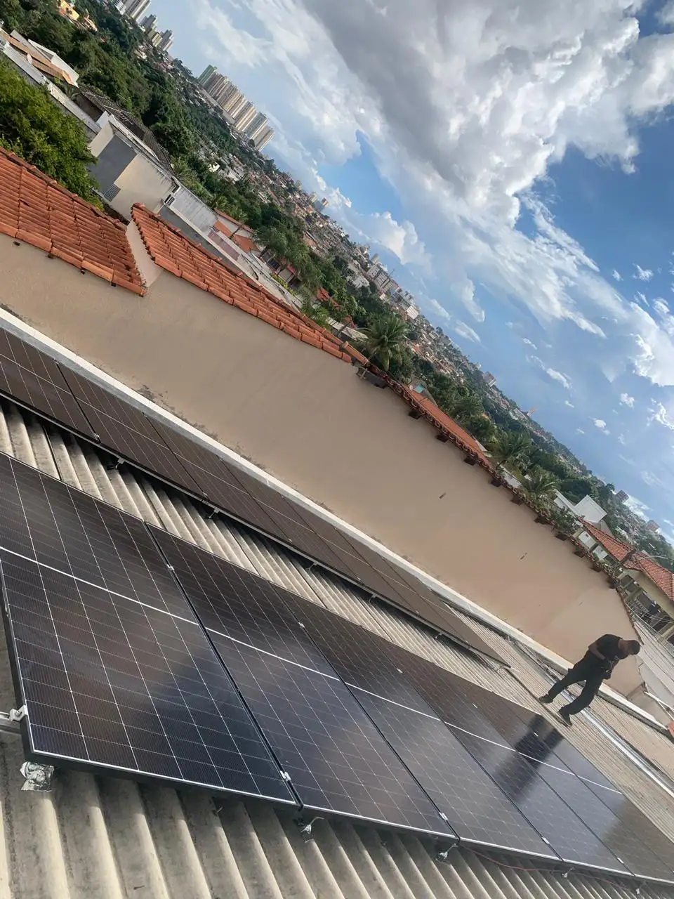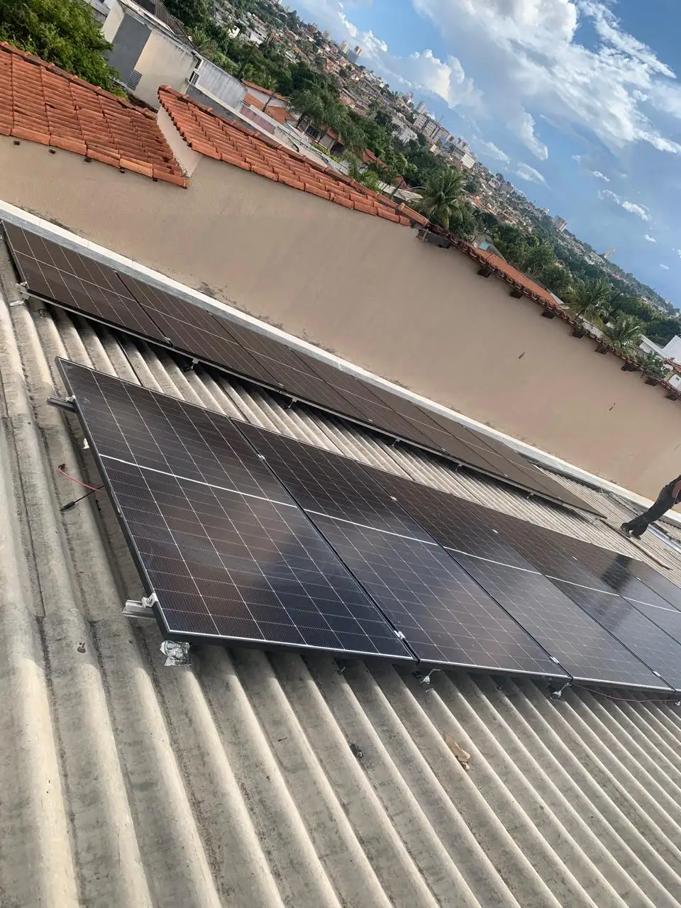 Instalação de 13 módulos fotovoltaicos ,dimensionados para uma geração média estimada de 1000 kWh por mês, ideal para atender comércios, empresas ou unidades com alto consumo de energia elétrico.